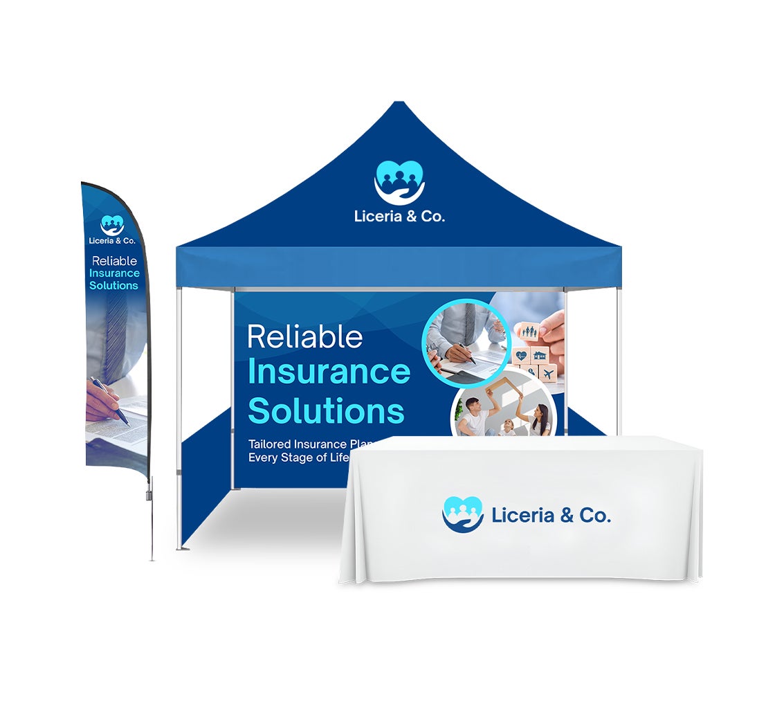 Graphic with Hardware, Canopy Topper, Back Wall Graphic Single Sided, Side Wall Graphic Single Sided, Rail for Side wall, Travel Bag with Wheels